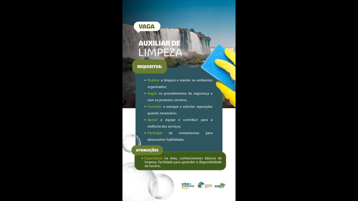 A URBIA CATARATAS, principal empresa de turismo sustentável de Foz do Iguaçu, está buscando um profissional dedicado e comprometido para ocupar a posição de Auxiliar de Limpeza em nossos estabelecimentos. Se você é uma pessoa proativa, colaborativa e possui conhecimentos básicos em procedimentos de limpeza, esta pode ser a oportunidade perfeita para você!